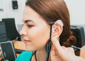 A Real Ear Measure determines how loud sounds are in the patient’s ear canal, after they have been processed by the hearing aid. The patient must sit still while a tube is placed in their ear canal. This tube is connected to a microphone that sits outside the ear. This microphone measures how loud sounds are before they enter the hearing aid, in order to compare. The patient’s hearing aid will then be placed in their ear carefully so as not to dislodge the tube. A series of tones will be played, ranging in pitch from soft to very loud. The results of this test are able to confirm if the soft sounds have been adequately amplified and if the very loud sounds have been reduced so they don’t exceed the patient’s discomfort level.